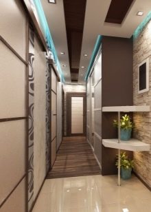 من الضروري تأثيث الرواق بأثاث ليس عمليًا فحسب ، بل أنيقًا أيضًا. بالنسبة للممر الضيق ، فإن التصميمات المعيارية مناسبة تمامًا ، والتي ستعمل أيضًا على تحديثه. يمكنك أيضًا تكريم الحداثة باستخدام الإضاءة في الخزانة ، على الطاولات الجانبية ، والأرفف ، والمنافذ ، وإطارات المرآة.