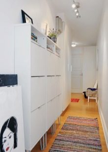 من الضروري تأثيث الرواق بأثاث ليس عمليًا فحسب ، بل أنيقًا أيضًا. بالنسبة للممر الضيق ، فإن التصميمات المعيارية مناسبة تمامًا ، والتي ستعمل أيضًا على تحديثه. يمكنك أيضًا تكريم الحداثة باستخدام الإضاءة في الخزانة ، على الطاولات الجانبية ، والأرفف ، والمنافذ ، وإطارات المرآة.