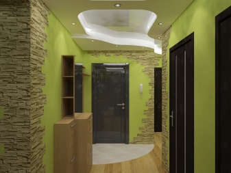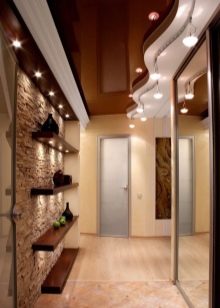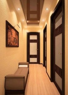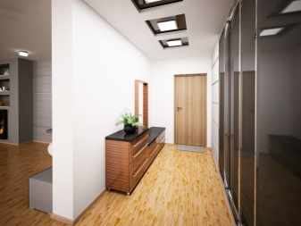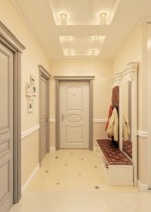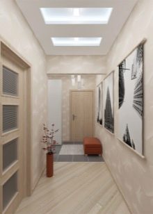 إذا كان الممر طويلًا جدًا ، يمكن تقسيم السقف إلى شظايا ، تمامًا مثل الأرضية ، عن طريق تسليط الضوء عليها بظلال مختلفة أو عن طريق وضع شعاع في الأعلى لتتناسب مع الأبواب وألواح القاعدة ، وتقسيم المناطق.