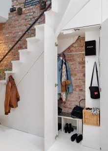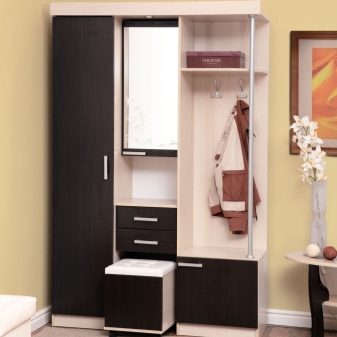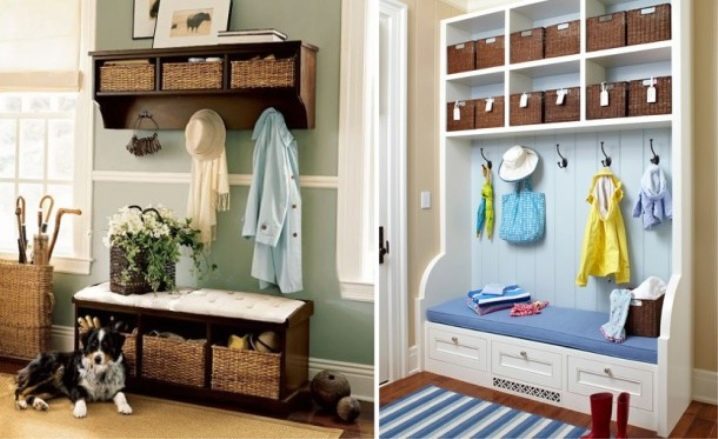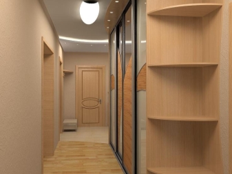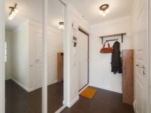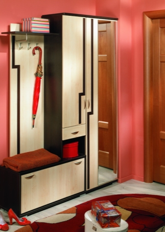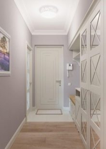 إذا سمحت المساحة ، فمن المناسب وضع خزانة ملابس. الخيار الشائع هو هيكل جسم مدمج يجمع بين خزانة ملابس للملابس الخارجية ، وطابق نصفي ، ورفوف للأحذية ، ورفوف للإكسسوارات ، وجميع أنواع الأدراج ، وغالبًا ما يكون مقعدًا. لا تنسى إمكانية وضع المرايا على أبواب الخزانة. سيكون الحل الجيد هو التثبيت في الهيكل الإضاءة الداخلية للغرفة. هذه حركة تصميم جيدة ومصدر إضاءة إضافي..