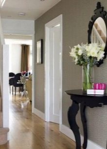 يعد وضع أرفف معلقة على الجدران حلاً جيدًا للداخل. قد تكون هناك حاجة لبعض الأشياء الصغيرة والمجوهرات والهدايا التذكارية ومستحضرات التجميل والمفاتيح وأكثر من ذلك. للأغراض نفسها ، يمكنك وضع طاولة صغيرة. من بين أشياء أخرى ، سيكون مناسبًا تمامًا للهاتف الأرضي..