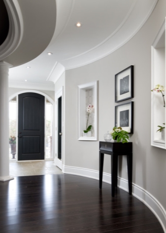 في التصميمات الداخلية العصرية الأنيقة للممرات ، غالبًا ما تستخدم خيارات لوحة الألوان التالية: