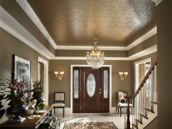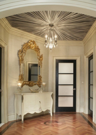 زخرفة السقف أقل لفتًا للانتباه ، ولكن يجب أيضًا أن تكون منسجمة مع باقي الأجزاء الداخلية: