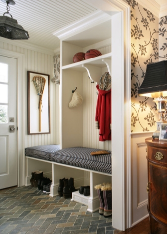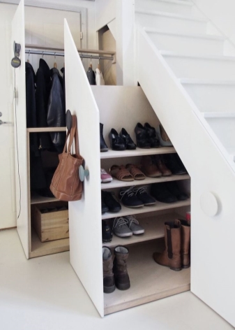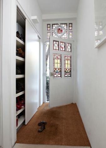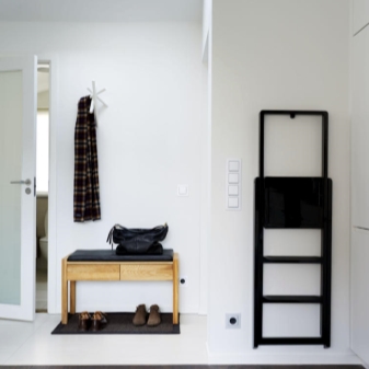 - في كثير من الأحيان ، يتم وضع رف مفتوح إضافي للأحذية في الممر – وهذا نموذجي للمساحات المتوسطة والكبيرة.