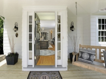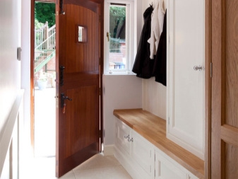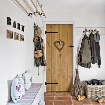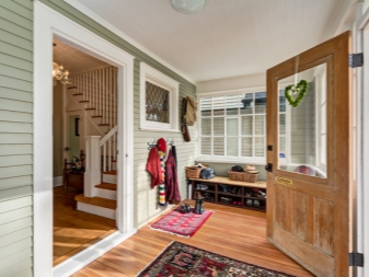 غالبًا ما توجد رواق الشرفة في منازل القرية. يمكنك تأثيثها بشكل جميل وعصري ، ولكن يجب استخدام حد أدنى من الأثاث. ستعمل خزانة صغيرة مغلقة ، جنبًا إلى جنب مع الخطافات والأرفف المفتوحة. إنه لأمر جيد أن يكون التصميم منسجمًا مع واجهة المنزل..