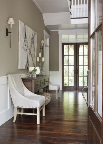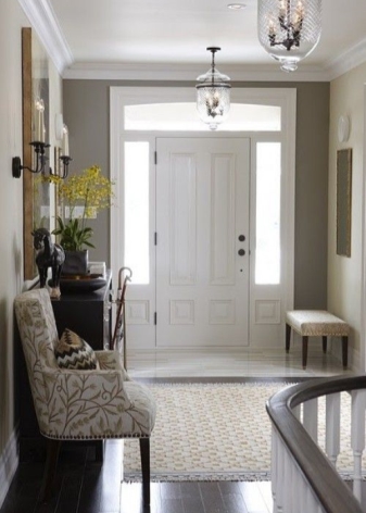 - يشتهر اللون الرمادي الآن بالجدران في الردهة. لتجنب التصميم الممل ، يمكنك طلاء جدارين باللون الرمادي ، وطلاء الآخرين بظلال غير متوقعة. الظل الرمادي مناسب للأزرق أو القرميد أو البيج الغني ، وكذلك الأثاث المصنوع من الخشب الداكن أو المطلي بألوان الباستيل الفاتحة..