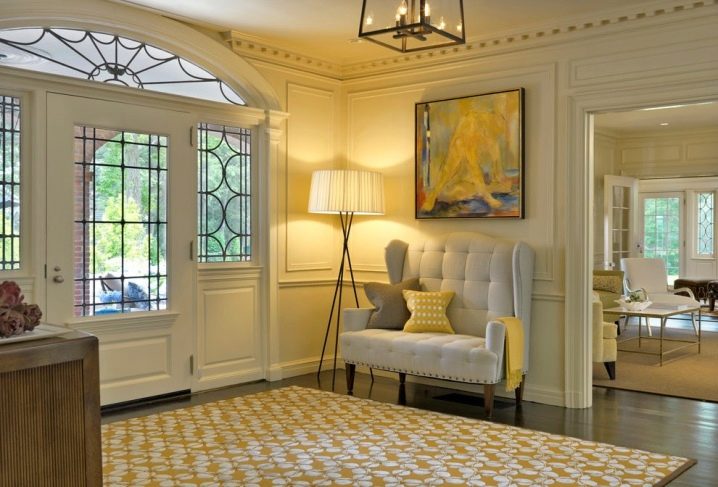 في كثير من الأحيان في المنازل الجديدة ، يمكنك رؤية ممر المدخل. يتيح لك هذا التصميم توفير مساحة قدر الإمكان. يمكنك بسهولة تقسيم الردهة ومناطق الغرفة بمساعدة الضوء ، وكذلك ألوان الجدران والأرضيات. ومع ذلك ، يجب أن يبدو أثاث غرفة المعيشة والممر متناغمًا معًا..