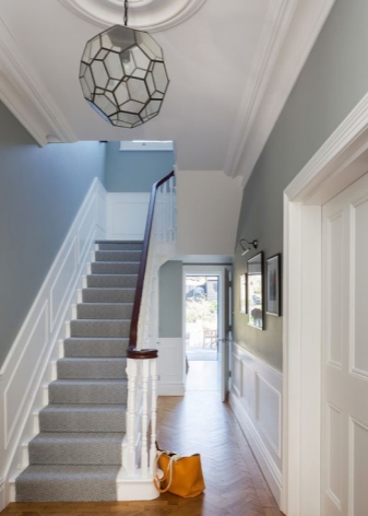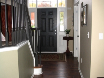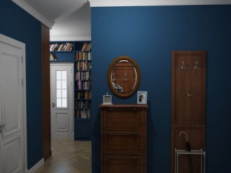 - في غرفة فسيحة لا يقتصر خيال المصمم عمليا على أي شيء. يمكن لعشاق الألوان الفاتحة في الداخل أن يصنعوا جدرانًا بظلال الباستيل ، ومع ذلك ، غالبًا ما يختارون خلفيات داكنة للممر ، نظرًا لأن الغرفة المزينة باللون البني أو الخمري أو الأزرق الداكن تبدو مريحة ويتم دمجها مع بقية الغرف في منزل. يجب إيلاء اهتمام خاص للبيئة: في مساحة كبيرة هناك خطر ترتيب الأثاث بطريقة فوضوية وجعل الردهة غير مريحة. من المهم اختيار الحد الأدنى من العناصر ووضعها عمليًا قدر الإمكان..