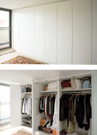 المقابض وخطافات الحائط والأرفف المفتوحة والأشياء الصغيرة متعددة الألوان لن تبدو جيدة في مساحة صغيرة.
