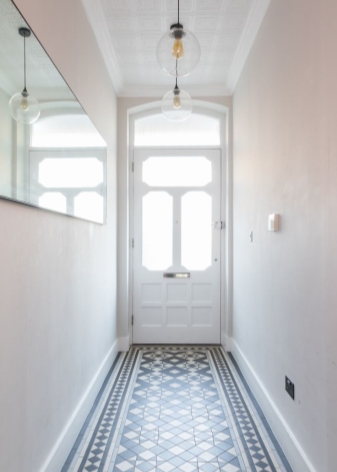 - من الجيد أن تجعل المساحة أوسع بصريًا. سيتم تسهيل ذلك من خلال اللون الفاتح للجدران والأثاث. تعتبر ألوان الباستيل حلاً رائعًا لممر صغير.