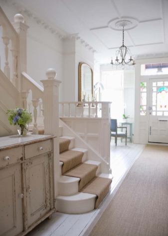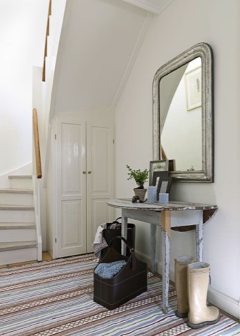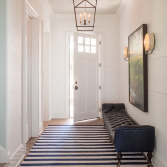 السجادة هي ملحق مهم آخر. يجب أن تكون صغيرة وسهلة الاستخدام. في التصميم الداخلي البسيط ، يمكن أن تصبح السجادة لهجة مشرقة ، وإذا اخترت بيئة مشرقة ومتنوعة ، فمن الأفضل ألا تكون ملحوظة على الأرض. أيضًا في الممر ، يمكنك وضع مزهريات مختلفة بالزهور المجففة أو المقطوعة أو الطازجة..