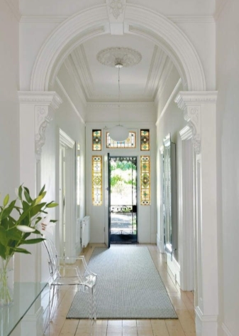 يتضمن الرواق الكلاسيكي مساحة صغيرة تؤدي إلى عدة غرف في وقت واحد. من المهم أن يكون تصميم الممر مختلفًا وأن يتم تحديد المساحة. ومع ذلك ، لا ينبغي أن يكون هناك تنافر جوهري بين ديكور الرواق وغرف المعيشة. غالبًا ما يصنعون تشطيبًا عامًا ويختارون الأثاث بنفس الأسلوب ، لكن الألوان والإكسسوارات يمكن أن تختلف بشكل كبير..