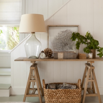 يمكن أن تساعد السلال الأنيقة على الرفوف المفتوحة في الحفاظ على الأشياء مرتبة وإضافة نكهة إلى الديكور. يمكن للوحات والمنحوتات تزيين غرفة واسعة.