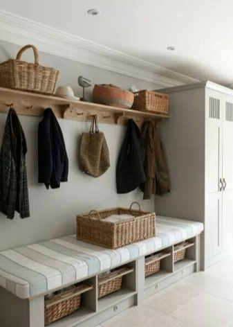 - خزانة ملابس خارجية. ستعتمد أبعادها على احتياجاتك وعلى حجم الرواق نفسه..