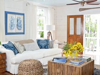 غالبًا ما يصنعون أرضيات خشبية أو حتى زخرفة خشبية للجدران ، ويمكن أيضًا أن يتناسب الحصير والسلال والكراسي بذراعين مع الداخل..