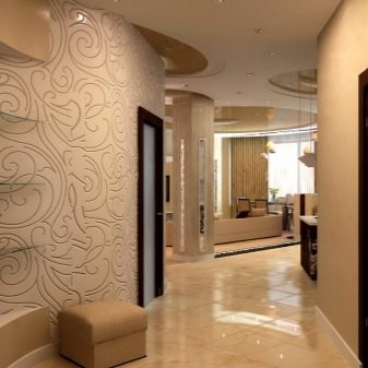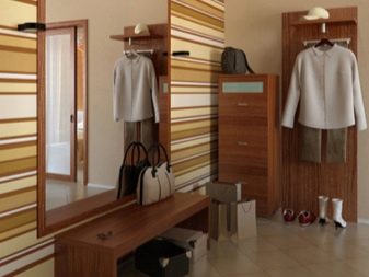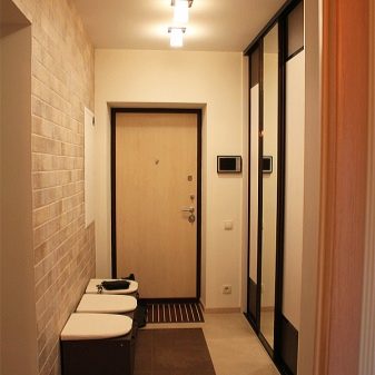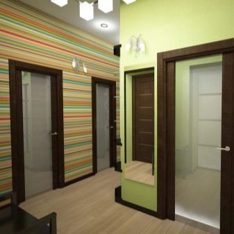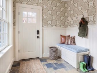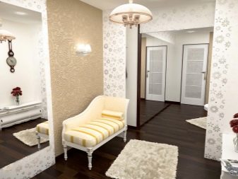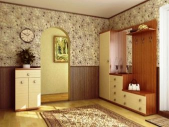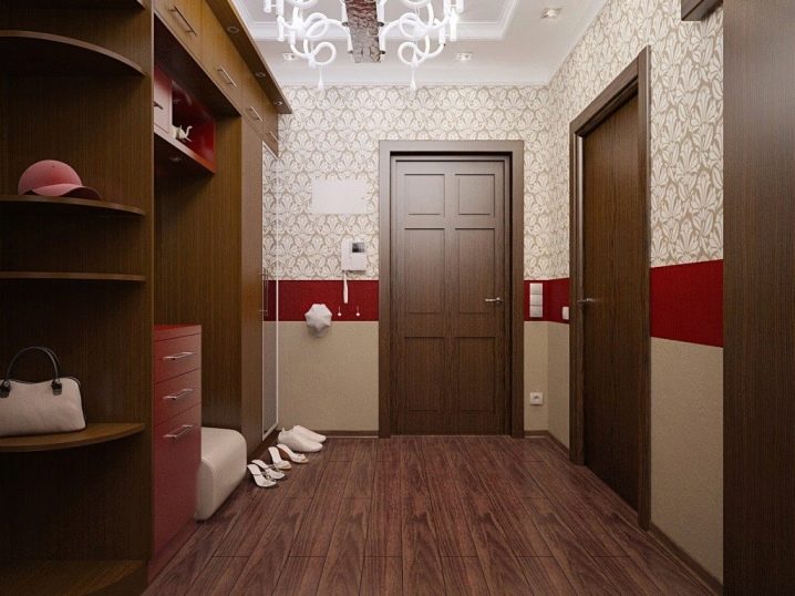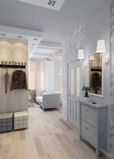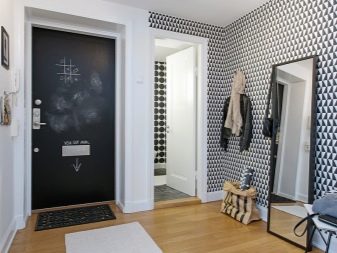 يبدأ الجزء الداخلي للشقة بتصميم قاعة المدخل. تودع وتلتقي أصحابها كل يوم ، وتشكل الانطباع الأول عن المنزل بين الضيوف. لا يمكن للتصميم الأصلي لهذه الغرفة “إحياء” التصميم الداخلي فحسب ، بل يمكنه أيضًا تصحيح العيوب في التصميم. مزيج ورق الحائط هو الخيار الأمثل لإنهاء مثير للاهتمام من حيث السعر وسهولة التنفيذ.