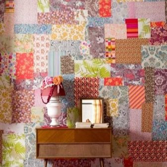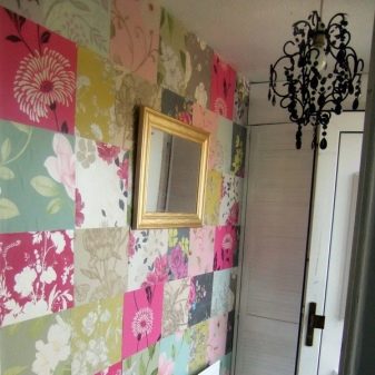 - خليط. تزيين الممرات بهذه التقنية أمر نادر الحدوث. عادة ما يتم تصميم دور الحضانة والمطابخ بهذه الطريقة ، ولكن إذا كنت ترغب في ذلك ، يمكنك تطبيق هذه الطريقة في الممر. الاسم الثاني للترقيع هو “لحاف خليط” ، وهذا ليس مصادفة. الجدار ، الذي تم لصقه بأجزاء صغيرة من ورق حائط مختلف ، يخلق مثل هذه الارتباطات. ليس من الضروري تزيين جميع جدران الرواق باستخدام هذه التقنية ، فمن الأفضل تخصيص جدار واحد لهذا الغرض. بالإضافة إلى ذلك ، لا ينصح المصممون باستخدام أكثر من 3-4 أنواع من “التصحيحات”. حتى لا يزعج الجدار بتنوعه ، فمن الأفضل اختيار خلفيات ذات تدرج لوني مماثل ، متحدًا ببعض المعلمات الشائعة.