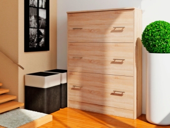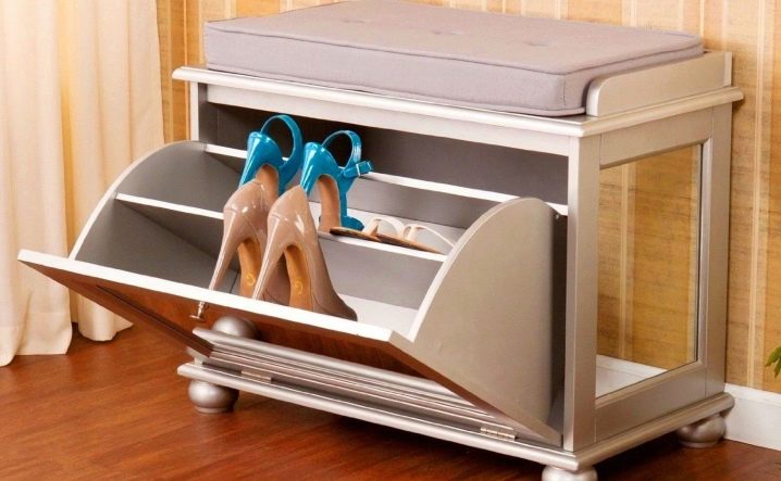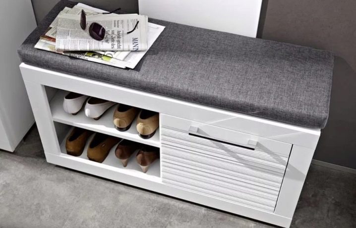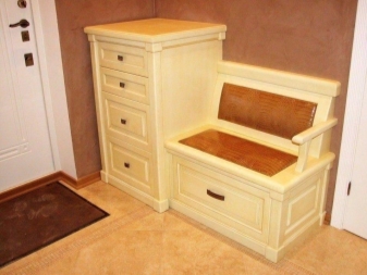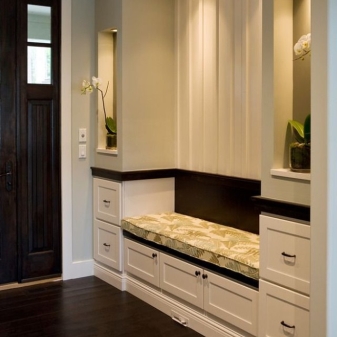 وبالتالي ، هناك مكان يكون من المناسب فيه تغيير الأحذية أثناء الجلوس. تؤدي قطعة أثاث واحدة وظيفتين في وقت واحد وتوفر مساحة في الردهة.