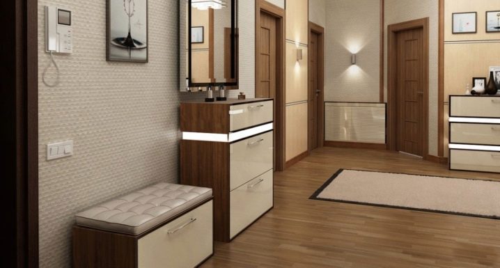 لا يلزم طلاء الخزانات الجانبية للممرات بمركب مقاوم للرطوبة ، وهو ، على سبيل المثال ، ضروري للحمام. لذلك ، يجب أن يعتمد الاختيار فقط على الأذواق والميزات الداخلية..