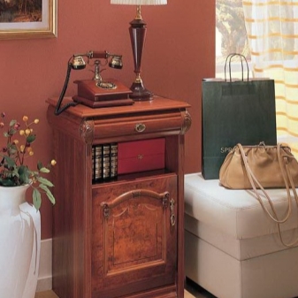 غالبًا ما يتم تجميع المقاعد مع الركائز. يمكن أن تكون هذه عثمانيين صغيرة ومقاعد ومقاعد ضيقة وأرائك. يجب أن يعتمد الاختيار على حجم الغرفة. يمكن وضع أرفف أو مقصورات إضافية تحتها. يتضمن هذا النوع المنتجات الخاصة بالهاتف الأرضي ، والتي لم تعد ذات صلة دائمًا الآن.