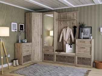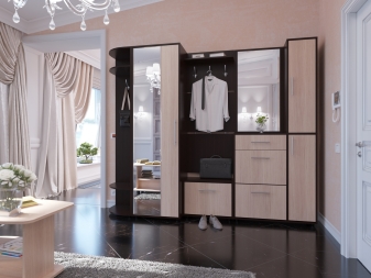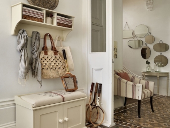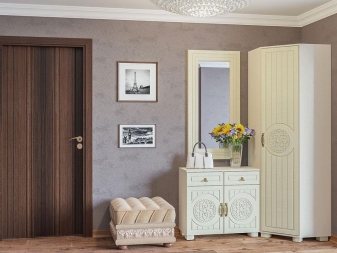 تعد قاعة المدخل جزءًا لا يتجزأ من الداخل ، حيث يجب أيضًا إظهار السمات المميزة للأسلوب الموجود في جميع أنحاء الشقة. لتسهيل التنفيذ ، تنتج العديد من المصانع خزانات مصممة بسمات مميزة لاتجاه أو آخر..