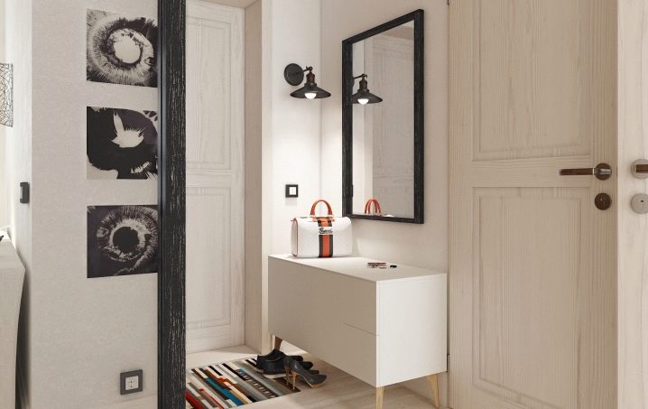 لاستخدام المساحة بشكل أكثر راحة ، من الأفضل وضع الخزانة في الممر بجوار المدخل ، مع استكمالها بمقعد أو كرسي. الميزة غير المشكوك فيها هي وجود مرآة بجانب أو عكس ذلك لترتيب نفسك. سيسمح لك هذا الأثاث بالتجمع وخلع ملابسك بجوار الباب مباشرةً ، حتى لا تحمل الأوساخ في جميع أنحاء الغرفة. إذا كانت هناك أبواب مفتوحة على أحجار الرصيف ، فيجب ألا يغيب عن البال أن هناك حاجة إلى مسافة لفتحها.