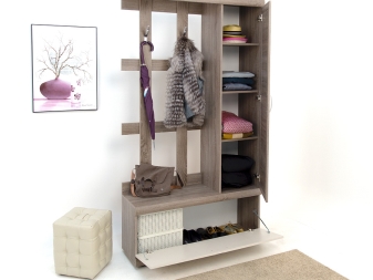 غالبًا ما يكون حجر الرصيف مخصصًا للأحذية ، بحيث لا يقف بشكل عشوائي عند المخرج. الجزء العلوي من الأثاث ، خاصة في الموديلات الطويلة ، أو بعض أرففه مخصص للأشياء الصغيرة: المفاتيح ، والنظارات الشمسية ، والقفازات ، ومستحضرات التجميل. تم أيضًا تكييف خيارات الحامل الأخرى لتخزين الملابس الخارجية أو مزودة بحوامل المظلات.