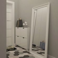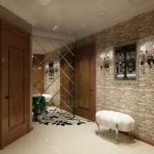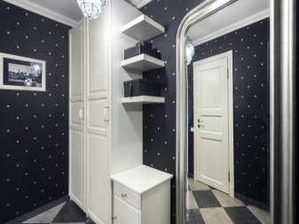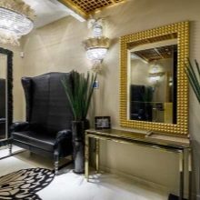 سيساعد استخدام مجموعة كاملة من التقنيات المعروفة ، وتصحيح نسب المساحات الصغيرة بصريًا: لوحة ألوان فاتحة ومرآة وأسطح لامعة ، على تزيين الردهة بشكل مفيد. بديل لمرآة واحدة هو تزيين الحائط كليًا أو جزئيًا بلوحات عاكسة كاملة..