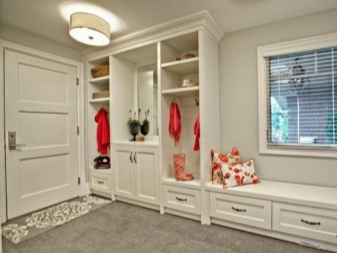 - في منزل خاص. يمكنك استخدام أي أثاث – خزانات ملابس أو نماذج زاوية أو نماذج خطية. في هذه الحالة ، تتمثل المهمة الرئيسية في اختيار مواد التشطيب المناسبة ، حيث تخرج الممرات في المنازل الخاصة أو في البيوت الصيفية إلى منطقة الفناء الخلفي..