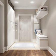 أثاث الحوائط الجافة المدمج هو حل عملي آخر في الردهة. GKL هي مادة ميسورة التكلفة وسهلة المعالجة والتركيب ومثالية لإنشاء أقسام ومنافذ وأرفف وخزائن مفتوحة.