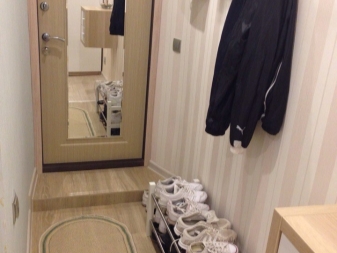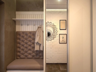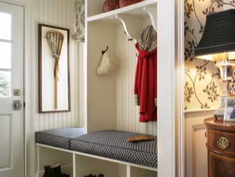تم العثور على مناطق دخول مدمجة للغاية في شقق سلسلة خروتشوف بتصميم قياسي. الحل الأكثر عملية هو تثبيت مقلمة طويلة ورفوف ضحلة مع منساخ. خيار بديل – وحدات.