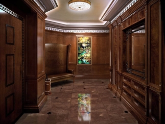 - ممرات النخبة من مجموعة من الأنواع القيمة في قاعات المساكن الريفية. قدر ثراء نغمات الخشب الطبيعي الدافئ وثراء درجات اللون البني في ألواح الجدران.