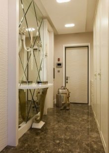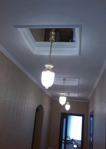 - يبدو السقف المرآة أكثر إثارة للإعجاب. من المعروف أن سطح المرآة يضاعف كل الأشياء. لذلك بمساعدة سقف معكوس ، يمكن مضاعفة ارتفاع الغرفة. تنعكس جميع الأدوات المنزلية والأثاث الموجود في الغرفة في السقف ذي المرايا ، والذي يمكن أن يخلق إحساسًا بمساحة غير محدودة تمامًا في الردهة..
