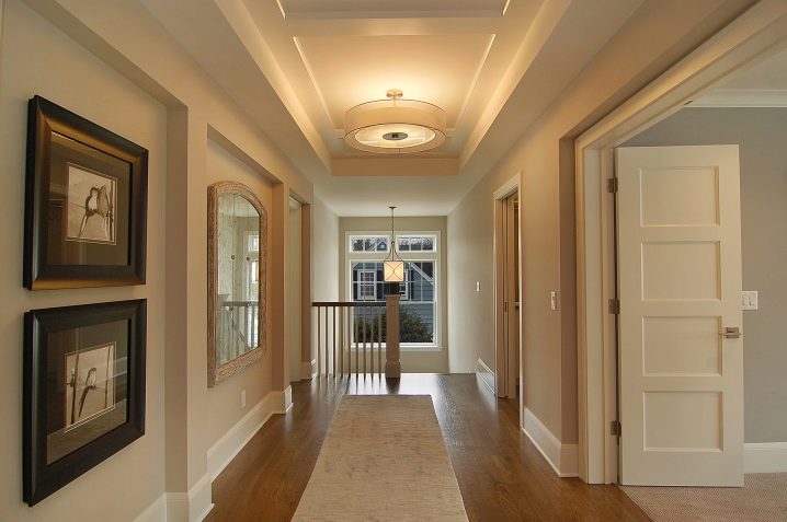يمكن لنظام السقف الجصي في الردهة ، مع الاختيار الصحيح للألوان ونظام الإضاءة الناجح ، تغيير صورة الممر الصغير وجعله أكثر اتساعًا وجاذبية.