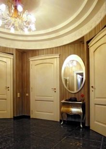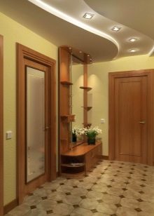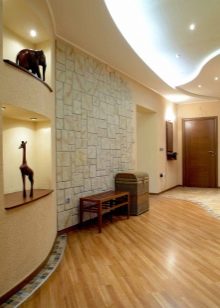 إذا كنت مالكًا محظوظًا لغرفة كبيرة في منطقة المدخل ، فمن الممكن أيضًا استخدام نظام دريوال حديث ، والذي سيساعد في هذه الحالة في تنفيذ حتى أكثر الحلول إسرافًا وغير المتوقعة. بعد كل شيء ، هنا يمكنك بناء سقوف من مستوى واحد ومتعدد المستويات. الشيء الرئيسي هو أن هذا الحل يجب أن يكون متناغمًا ويتناسب مع مفهوم التصميم العام للشقة ككل..