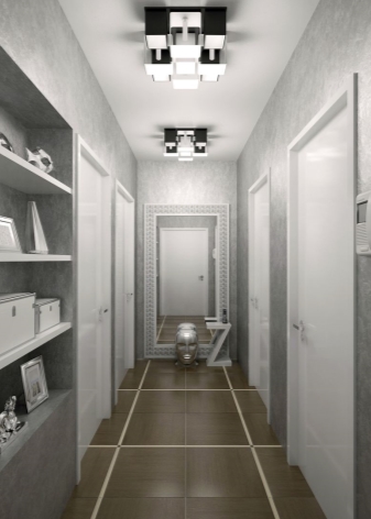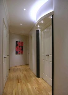 - الأسلوب الأصلي للممر العام هو استخدام نظام دريوال متعدد المراحل. سيصبح هذا البناء الثقيل للوهلة الأولى عديم الوزن تقريبًا بفضل نظام الألوان المدروس ، وكذلك بسبب معدات نظام الإضاءة النقطية. عند تركيب نظام إضاءة ، يوصي الخبراء باستخدام عدة أنواع مختلفة من مصادر الضوء في نفس الوقت ، مما يخلق تأثير “الهواء العائم” ويضيء جميع المناطق المظلمة في الممر.