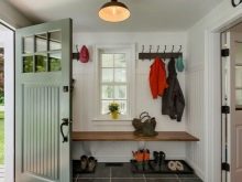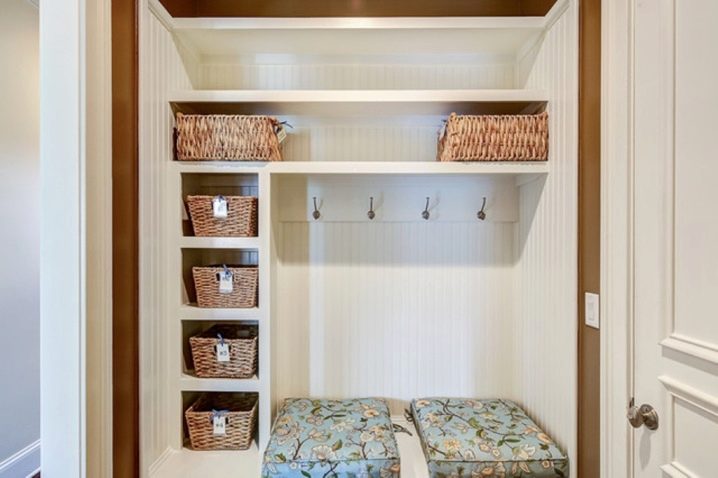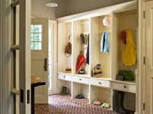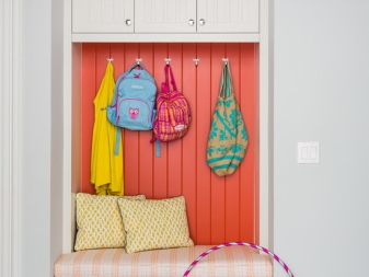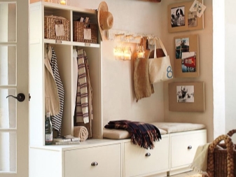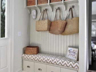 الخيار الشائع هو استخدام الأرفف المفصلية: في الأعلى – ميزانين للقبعات والقفازات والأوشحة ، وفي الأسفل – خطافات للحقائب.