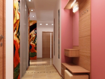 الرواق عبارة عن غرفة صغيرة ، لذا يُنصح باختيار لون فاتح (بيج أو نعناع). ستساعد هذه الخطوة على زيادة المساحة بصريًا. لا تنسى الإضاءة. نظرًا لعدم وجود نوافذ في الممرات في معظم الشقق ، عليك أن تنقذ نفسك بالمصابيح العادية.. تعمل الإضاءة الموضعية بشكل أفضل., حيث ستتمكن العديد من المصابيح الصغيرة من إضاءة كل زاوية بشكل أفضل.