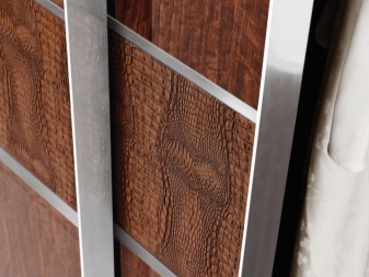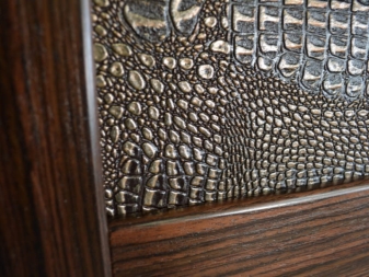 - إذا كنت ترغب في إنشاء شيء فريد ومكلف حقًا ، فيمكنك ببساطة تغطية الأبواب بجلد التمساح. يزين بعض الهواة الواجهة بإدخالات جلدية على شكل رقعة شطرنج. هنا رحلة الخيال محدودة فقط بميزانيتك..