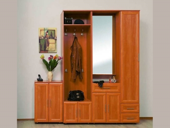 أثاث خزانة – خيار عالمي. تبدو هذه المنتجات كجدار صغير لغرفة المعيشة ، إلا أنها تكملها شماعات ملابس ورفوف للقبعات والأحذية. يجدر اختيار نموذج فسيح يتكون من عدة أقسام. غالبًا ما تكون عناصر الأثاث مصنوعة من MDF واللوح. تعتبر الخيار الأكثر تكلفة واقتصادية. إذا كنت تبحث عن شيء أكثر فخامة ، فاختر الطرز من المجموعة. لطالما تم تقييم الخشب لخصائصه الطبيعية وموثوقيته.
