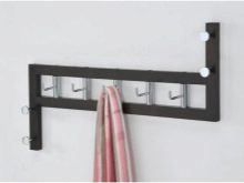 إذا لم تكن بحاجة إلى أرفف وكنت تفضل البساطة ، فضع علاقة متحركة للأشياء. علق حقيبة زخرفية صغيرة للأشياء الصغيرة على أحد الخطافات ، واترك حذائك على الرف السفلي..
