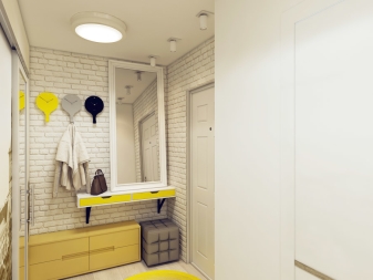 سيكون الحل الداخلي الممتاز هو خزانة ملابس يمكنها إخفاء جميع الملابس والإكسسوارات عن العينين ، لأن هذا سيحافظ على الشعور بالترتيب في الغرفة. تلعب الإضاءة دورًا مهمًا في الردهة.