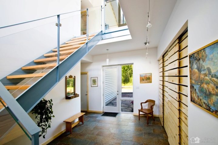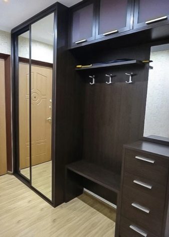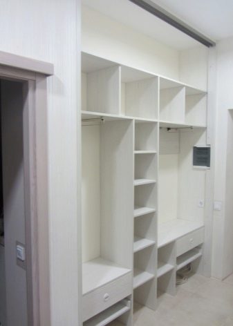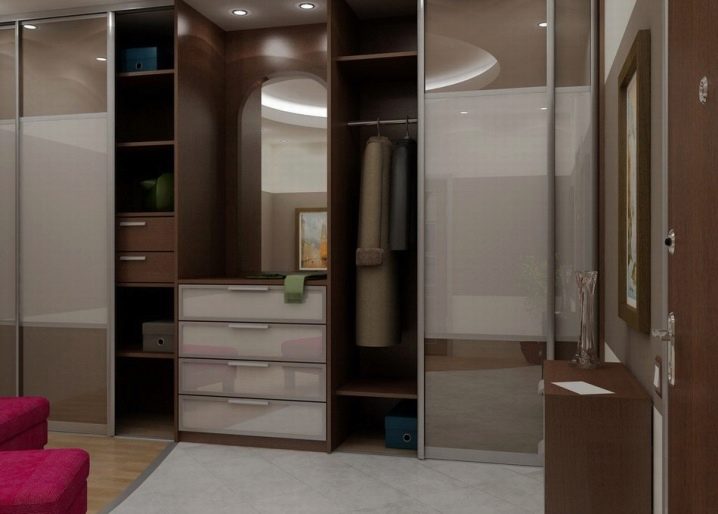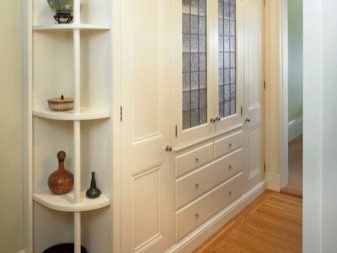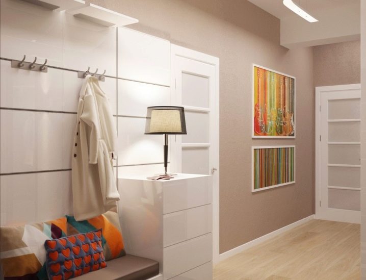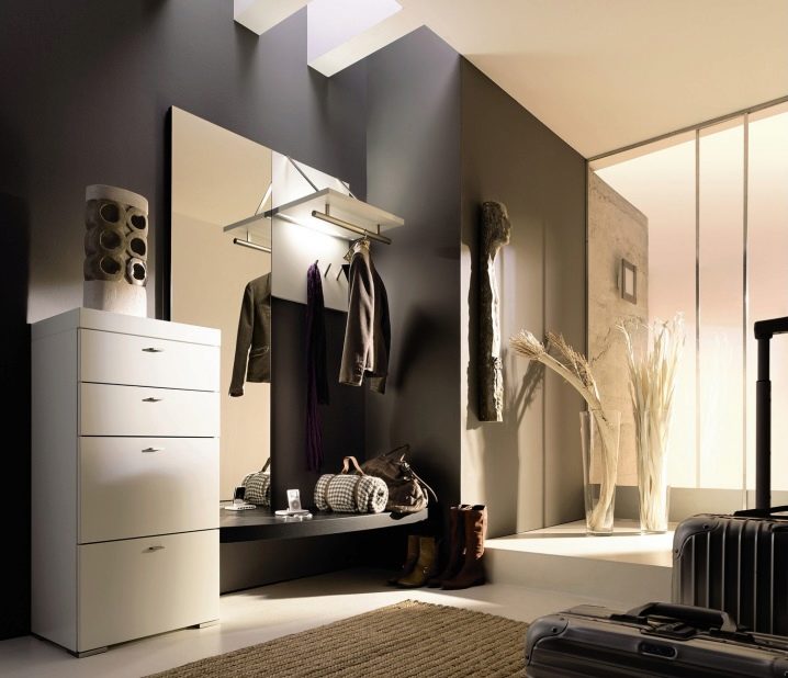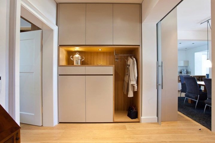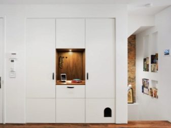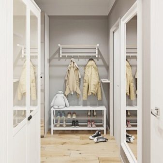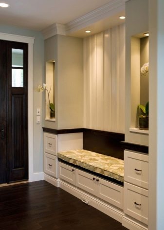 لتحقيق أقصى استفادة من المساحة وجعل منطقة المدخل عملية ، يتم استخدام أثاث مدمج. جميع الممرات المدمجة هي جزء من الهندسة المعمارية للغرفة ، وذلك بفضل الميزات التالية: