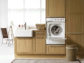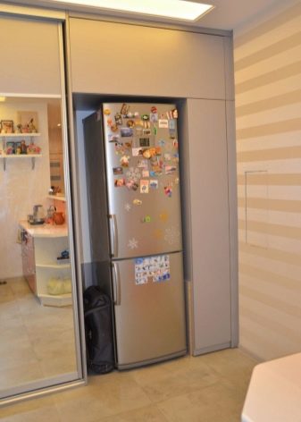 بالطبع يمكنك تركيب ثلاجة عادية أو غسالة ملابس في القسم ، مع ترك فجوات للتهوية والاهتزاز ، لكن هذا لا يضمن أن الجهاز سيعمل بشكل جيد. اعتني بوضع المنافذ مسبقًا.