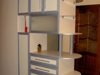 يتكون الإطار عادة من اللوح الرقائقي (اللوح الرقائقي). يعد هذا ضروريًا لتقليل التكلفة ، لأن الإطار المصنوع من الخشب الطبيعي سيكلف ثروة. بالإضافة إلى ذلك ، غالبًا ما تكون الأرفف والأدراج والأقسام الرأسية مصنوعة من البلاستيك. يعتبر البلاستيك مادة صحية أكثر ، فهو مقاوم للعفن والعفن الفطري ، ولا يسبب الحساسية ، كما أنه آمن عند ملامسته للملابس. لكن المنتجات المصفحة لها لوحة ألوان أوسع.