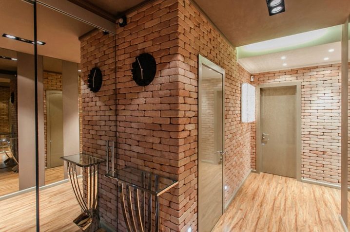 - البناء بالطوب. يمكنك استخدام البناء بالطوب الأبيض والأحمر. يُسمح أيضًا بورق الجدران الذي يقلد نسيج الطوب وتخفيفه..