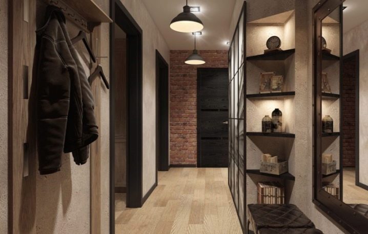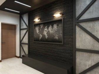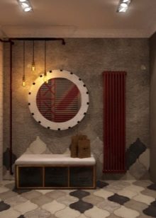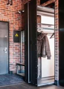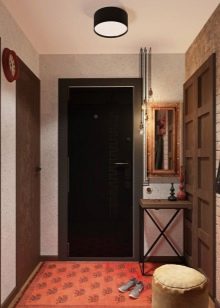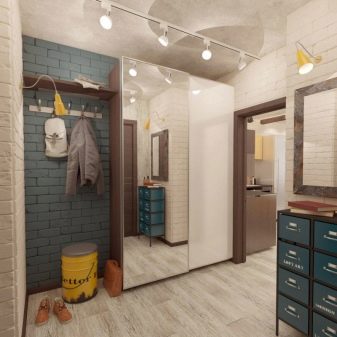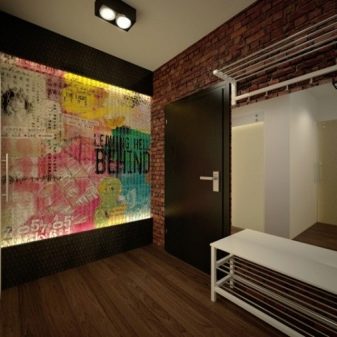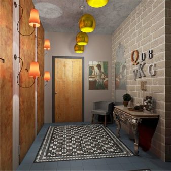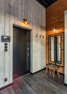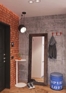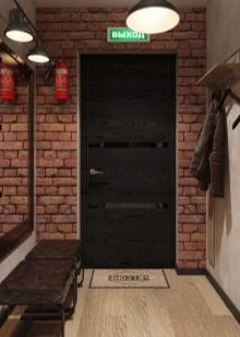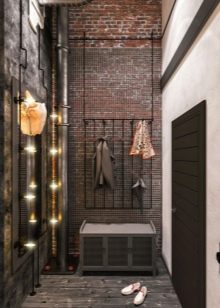 - نقطة مهمة هي الملحقات في الردهة. يتم اختيارها بعناية وتشبه القمامة التي ألقى بها شخص ما بعيدًا. الغرض الرئيسي من عناصر التصميم هو التذكير بأن النمط له خلفية صناعية. ستتم الإشارة إلى ذلك من خلال الأسهم التي تشير إلى الاتجاه إلى الغرف ، والنقش “أدخل” أو “الخروج” ، وعلامات الطريق ، ومصابيح الطوارئ.