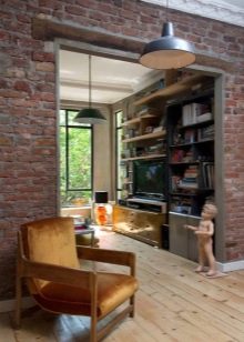 - البناء بالطوب. يمكنك استخدام البناء بالطوب الأبيض والأحمر. يُسمح أيضًا بورق الجدران الذي يقلد نسيج الطوب وتخفيفه..
