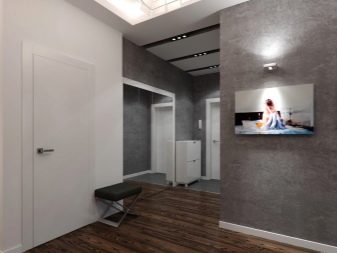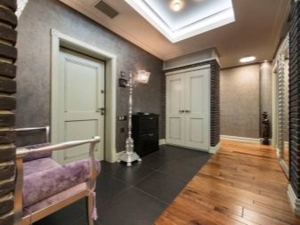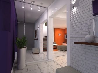 - تقنية عالمية هي ربط الرواق بغرفة المعيشة. للقيام بذلك ، تحتاج إلى إزالة الجدار بينهما ، والجمع بينهما مع نفس السقف..