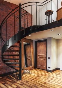 - يمكن تنظيم الخروج إلى الطابق الثاني من المسكن باستخدام درج معدني ملحوم بسياج شبكي ، يذكرنا بورشة العمل.